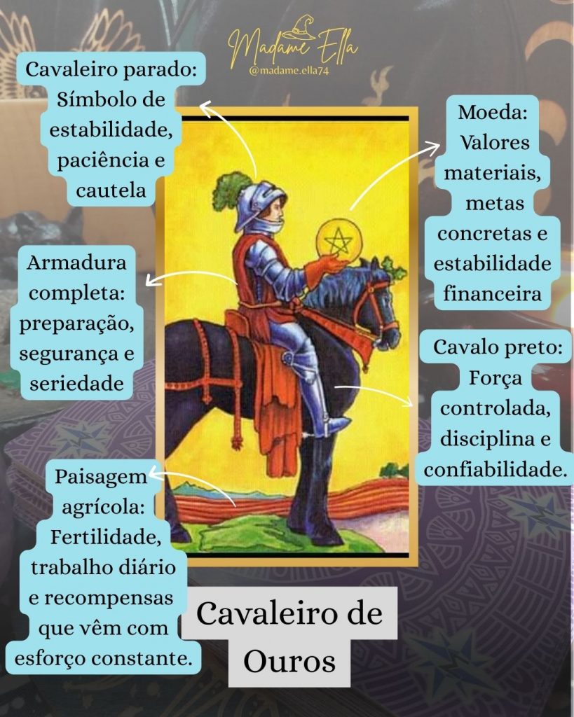 O Cavaleiro de Ouros é excelente: representa momentos lucrativos, boas oportunidades concretas e uma postura responsável com o dinheiro. Costuma ser econômico, pé-no-chão e muito estratégico — alguém que sabe a diferença entre “prata e ouro”.
