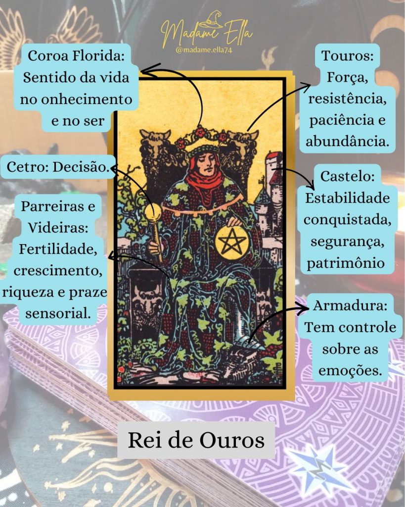O Rei de Ouros é a expressão máxima desse elemento: o que constrói, protege, mantém e multiplica os frutos da Terra.