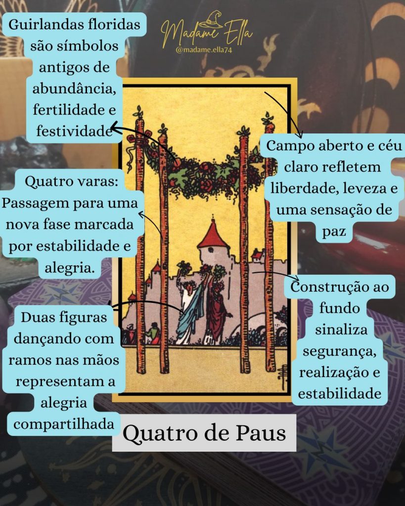 O Quatro de Paus nos lembra que a vida também é feita de celebrações — e que reconhecer a beleza do agora é tão importante quanto planejar o que vem depois.